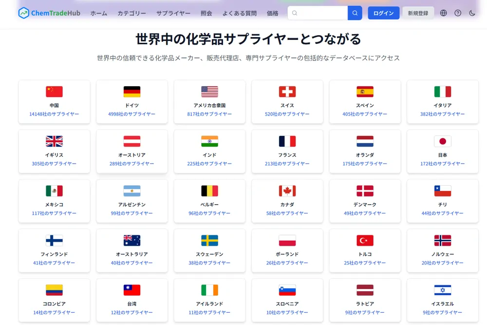 ChemTradeHub では、23,000以上の化学品サプライヤー の企業・製品情報を網羅しており、グローバル市場で豊富かつ信頼性の高い調達・供給データを提供します。また、強力な製品カタログ管理機能により、企業は製品情報を効率的に整理・表示でき、効率的で明確な情報表示 を実現します。
